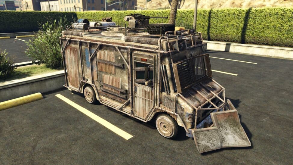 如果易通达快递员把它在沙滩海岸的停车场扔了一整晚,这算不算后末日风格?我们不确定,但一旦从那些把它变成私人战争越野车的持枪狂饮柴油的变种人手中夺回它,这辆布鲁特就诞生了。现在,他们堕落的天才之作正在进入公开市场,所以如果你想在外观、气味和感觉上都像世界末日一样,这就是你的机会。 - 武器化